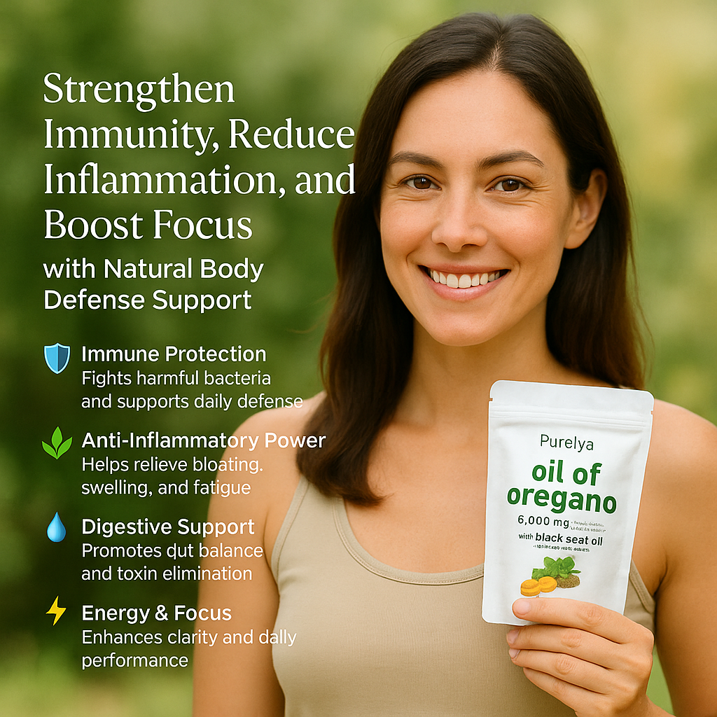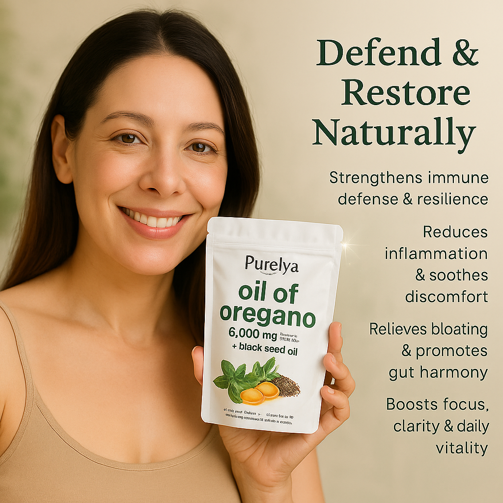 Purelya Nature Oil of Oregano with Black Seed Oil is a powerful, science-backed wellness formula designed to fight inflammation, strengthen immunity, and protect gut health from within. It helps reduce swelling, combat harmful bacteria, and prevent sickness for lasting energy and balance.